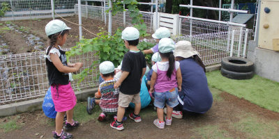 今日は園庭で遊んだ園児達。みんなは遊具で遊ぶことはできなくても、三輪車やおいかけっこで楽しく遊んでいます。