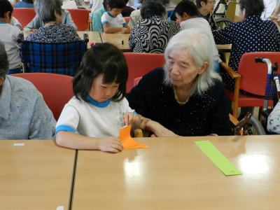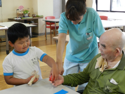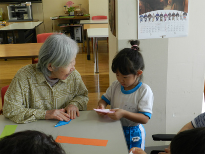 一緒に折り紙を折ったりと楽しく触れ合いました(^^♪