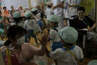 中に入ると少し緊張気味の子ども達でしたが、利用者さんたちの暖かい拍手に