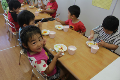 みんなフルーツたっぷりのおいしそうなケーキにくぎづけ(^O^)
