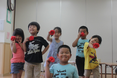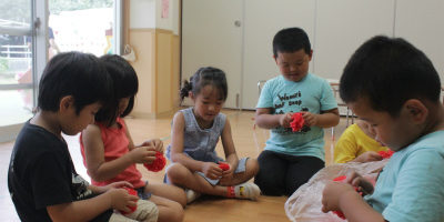 その後幼稚部のお友達は夏祭りの飾り作り(^O^)