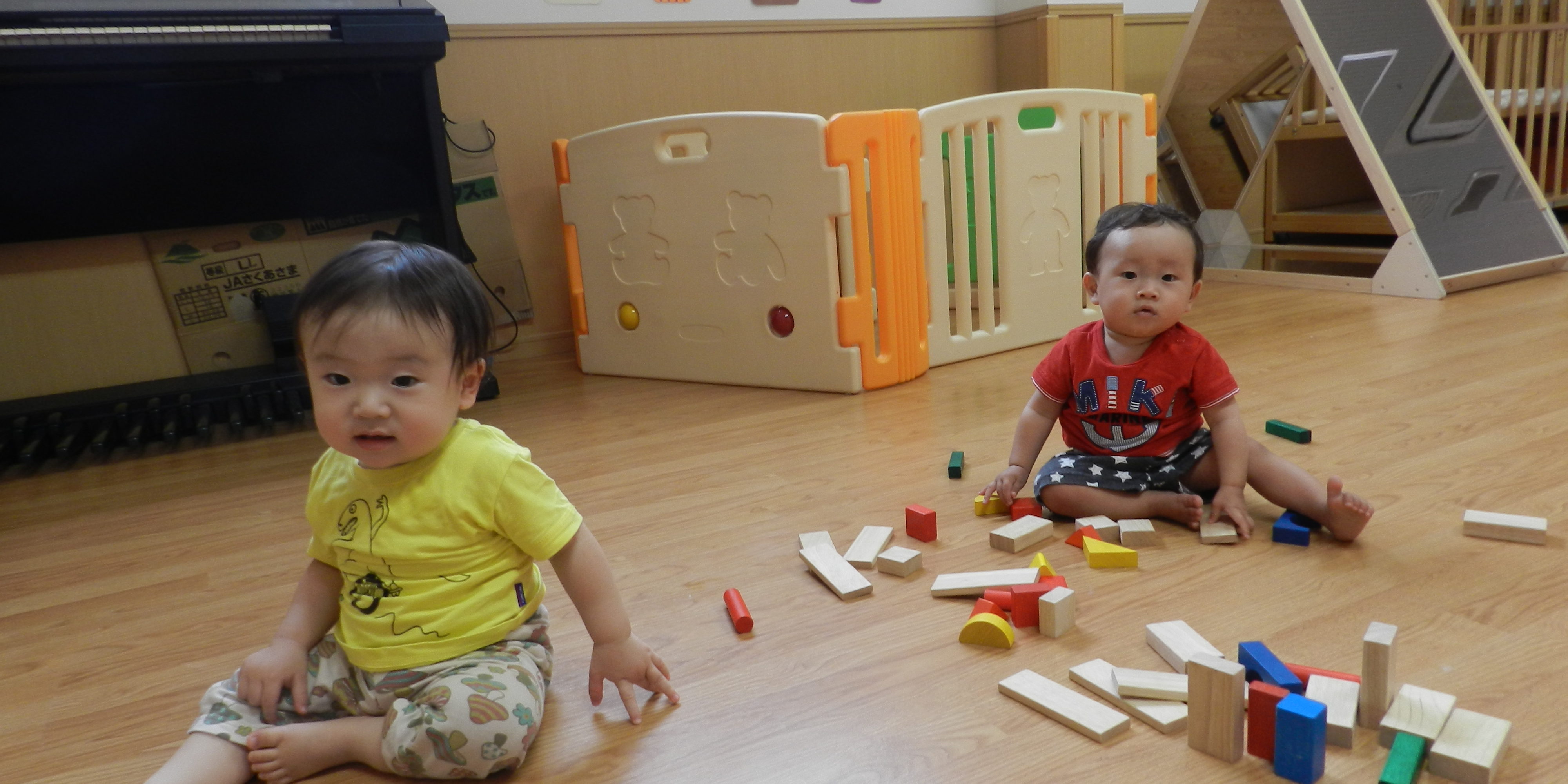 きょうの午前中は積み木遊びをしました♪作っては倒し、作っては倒し・・・