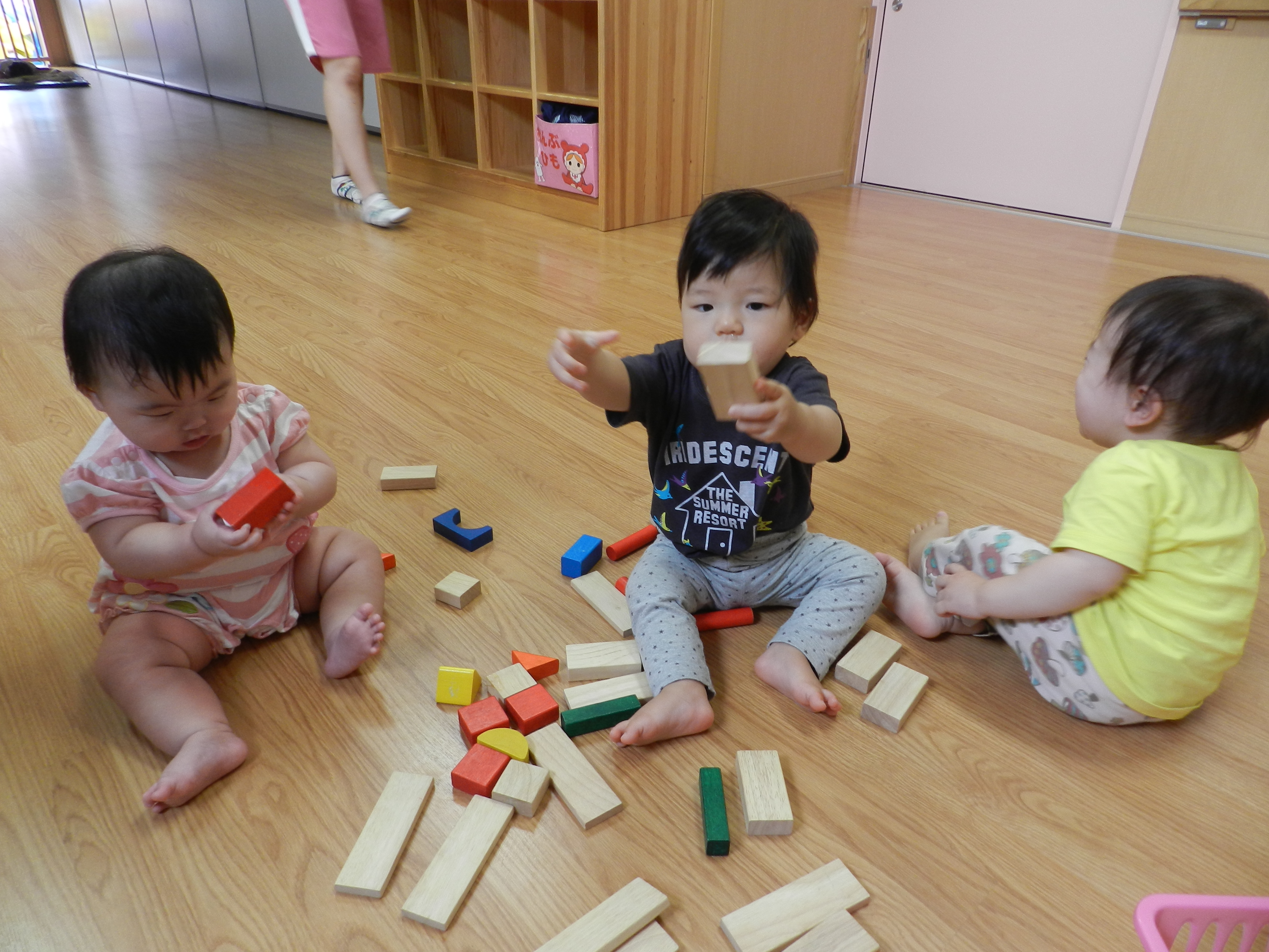 積み木を持っていろいろな角度から見たりして・・・みんな研究熱心!?