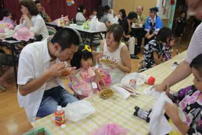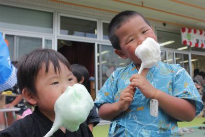 綿あめや焼きそばも食べられて満足そうな子どもたち♪
