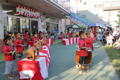 年長さんのライオン組のお友だちによる太鼓演奏「ソーラン節」