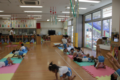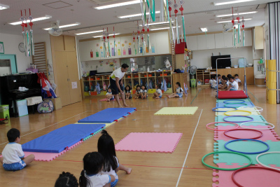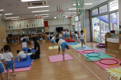 次は、フラフープと側転と前転をやりました!みんな上手ですね(*^^)v