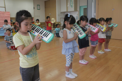 その後、ライオン組さんと一緒に鍵盤ハーモニカで「きらきら星」の演奏を合わせました(*^_^*)