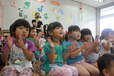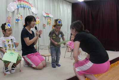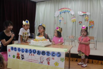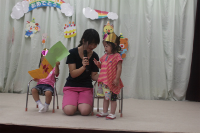 7月生まれのお友達とてもうれしそうに舞台に上がっていました♫