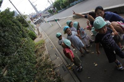 みんなは顔をあげてどこにセミがいるのか探していました。
