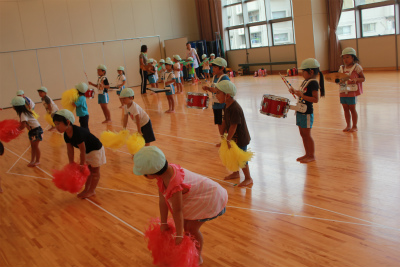 まずはポンポンを持った子ども達が並び、次に楽器を持った子ども達が並びます。