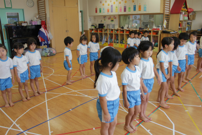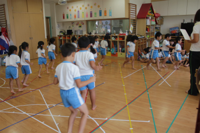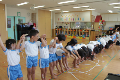 体操教室では組体操の練習!