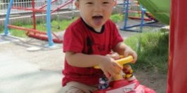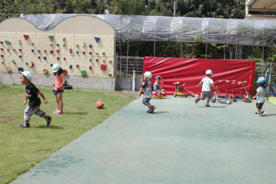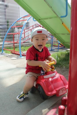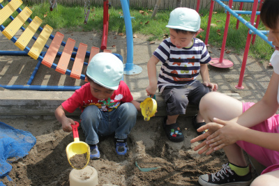 スクーターや手押し車に乗ったり、お砂場遊びをしたりと好きなあそびを楽しむお友達☆