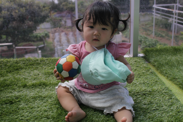 ラッコ組さんはみんなで仲良くベランダでボール遊びをしました。