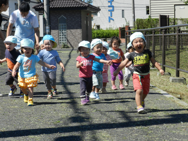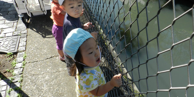 ペンギン組さんはみんなで近くの川を見に行ったり、治水緑地に散歩に出かけてきました。