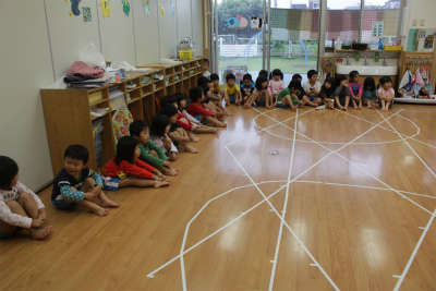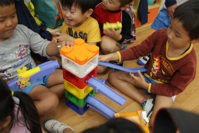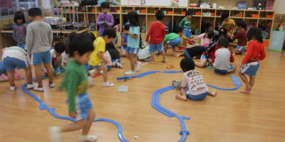 みんなで力を合わせて、長い線路ができたよ(*^_^*)