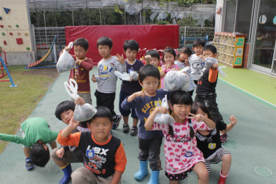 みんな袋いっぱいに台風の落とし物を見つけて拾いました☆
