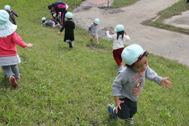 他にもトンボ探しやバッタ探しをし、見つけるとうれしそうに追いかけていました!