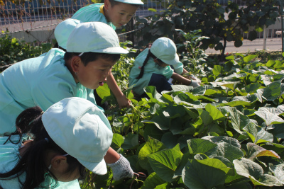 今日はライオン組のお友達が、なかよし農園で一生懸命に作業をしていました。