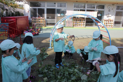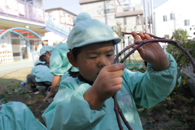 ライオン組さんは、サツマイモのつるを丸くして、クリスマスのリースを作るようです❤