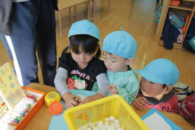 ライオン組は芋のツルで作ったリースが出来上がりつつあります(^^♪
