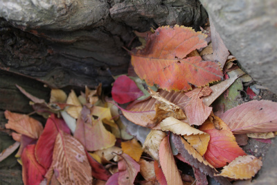 落ち葉を木のくぼみにどんどんためてー・・・