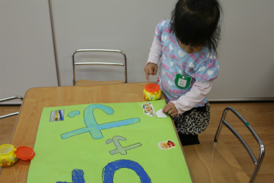 シール貼りが大好きなペンギン組は何色にしようかなー?とみんな悩んでいましたが、それぞれ好きな色を選び「青ペタペタ!」「みどりペタペタ」「キラキラペタペタ」と言いながら上手に貼っていましたよ(^_^)v
