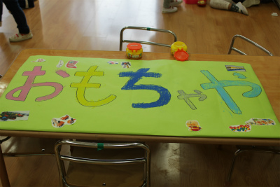 おもちゃのシールを看板に貼っていました!さすがパンダ組貼るのも上手ですね(*^。^*)