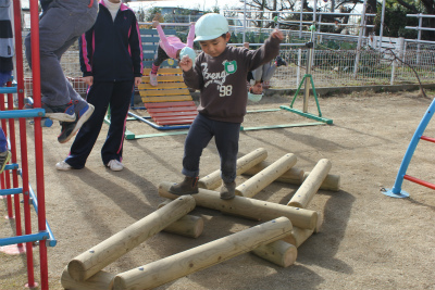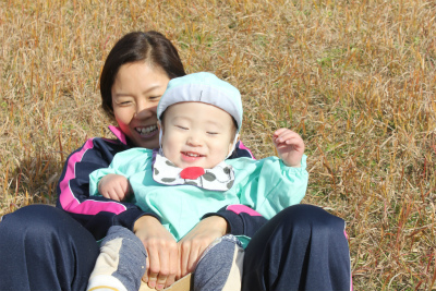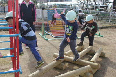 まだまだ歩行が安定しない子も芝生の上で安心して歩く練習をたくさんしていました。