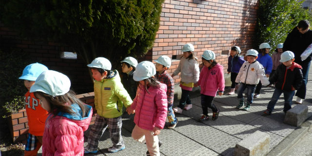 朝の雨が止み、幼稚部のお友達がどこかへ出かけていきました(^_^)v
