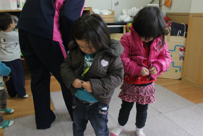 イルカ組(2歳クラス)のお友達はチャックだって自分でできちゃいます(^^)v
