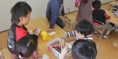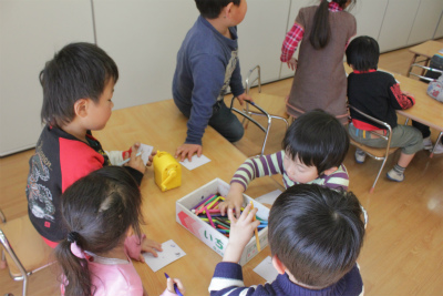 自分で考えて描く子、お友だちと相談しながら描く子などいろいろな姿が見られました!