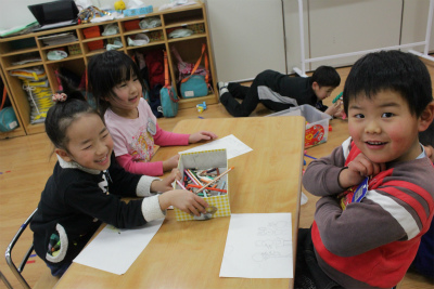 子ども達は今日、何度も外を見て「雪降るかな?雪降ればいいね」と