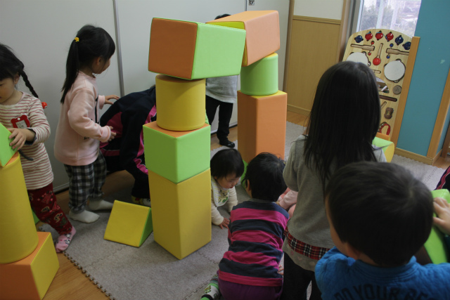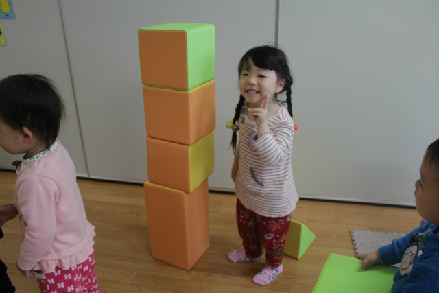 巧技台の使いかたも段々変わってきて、今日はみんなで汽車に見立てたのかな?
