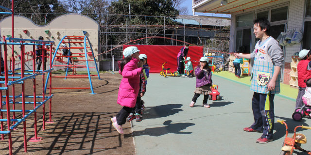 幼稚部のお友達は、ボランティアに来てくれている土屋先生と長縄で「郵便屋さん」をしました(^O^)/