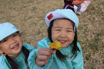 お散歩に行くと、タンポポやぺんぺん草が咲いていて、
