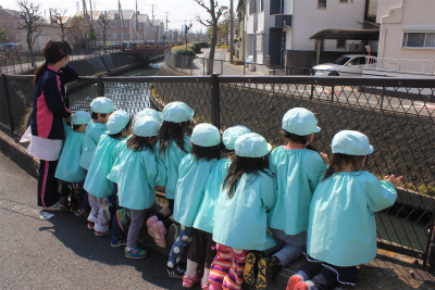 辰井川沿いを歩きながら「カメさんいるかな~?」と毎回、楽しみにしている子どもたち…