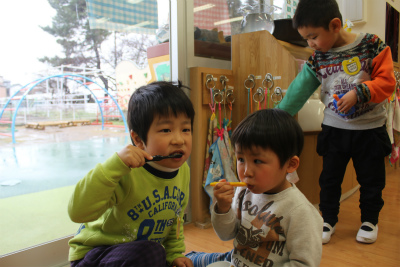 お給食を食べた後は上手に歯磨きを行います\(^o^)/