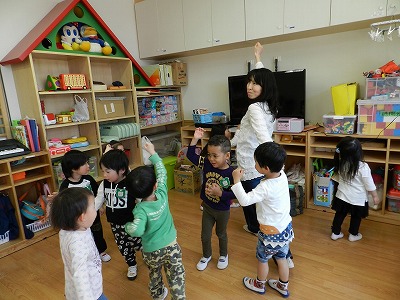 パンダ組さんの英語教室はイルカ組よりも動きながら英語をお勉強* ̄- ̄)!