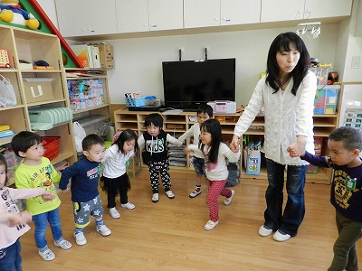 手をつないで輪になって英語で歌を歌っています(^o^)