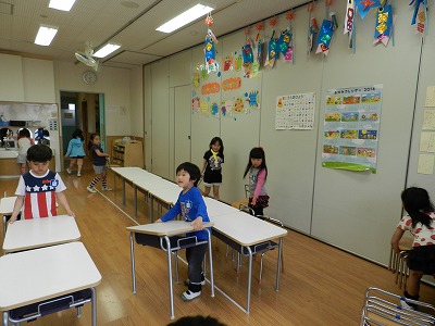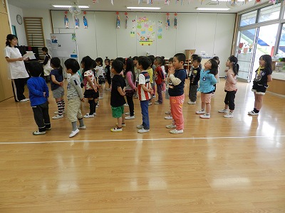 で歌を歌う姿勢になります。みんなビシッと一斉に同じ姿勢に!(^o^)
