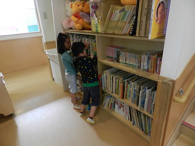 ライオン組は二人でみんなで読んでいる絵本の本棚をきれいに整頓してくれています!
