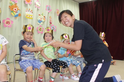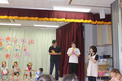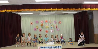 この稲葉先生の名演技には職員やお友達からも大爆笑がおこり、とても楽しい誕生日会になりました。ヽ(・∀・)ノ