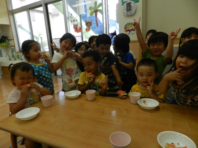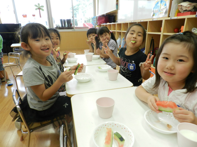 甘いすいかに子ども達も大喜びでした。パクパクとおかわりをする子もいましたよ!