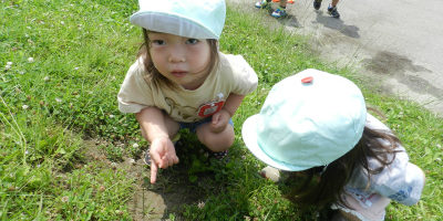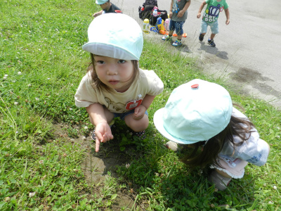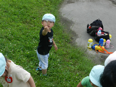 「見てみて!」と何か指さしていますね。なんでしょう。