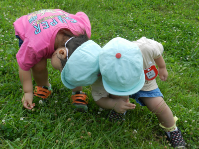 シロツメクサでかんむりを作ったり、指輪をつくったりと楽しそうでした。