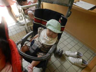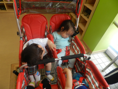 ラッコ組さんもカートに乗ってお散歩に行きました。
