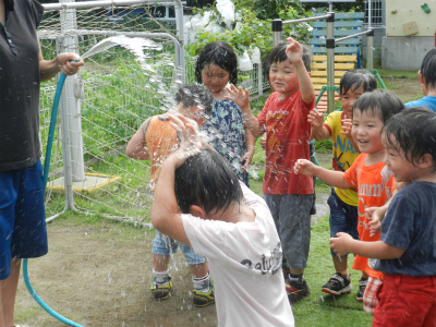 「先生もっと水かけて!」と頭から水浴びをしている子もいました。