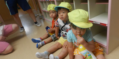 同じ色の帽子を被ったグループのお姉さん・お兄さんがお部屋まで迎えに来てくれます。