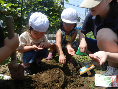 今月はみんなでカブの種まきをしました(*^^)v