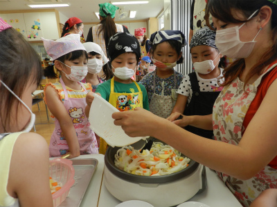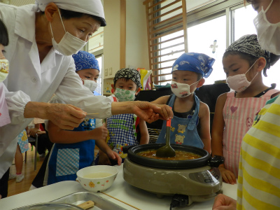 お野菜、柔らかく煮えたかな~?園長先生が見てくれました。